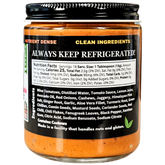 Wine Tomatoes, Distilled Water, Tomato Sauce, Lemon Juice, Avocado Oil, Red Onions, Cashews, Jaggery, Himalayan Pink Salt, Ginger Root, Garlic, Aloe Vera Fillet, Turmeric Root, Green Chillies, Cumin Seeds, Mustard Seeds, Coriander Seeds, Red Chilli, Chili Flakes, Fenugreek Leaves, Black Pepper, Xanthan Gum, Citric Acid, Sodium Benzoate, Sodium Citrate.